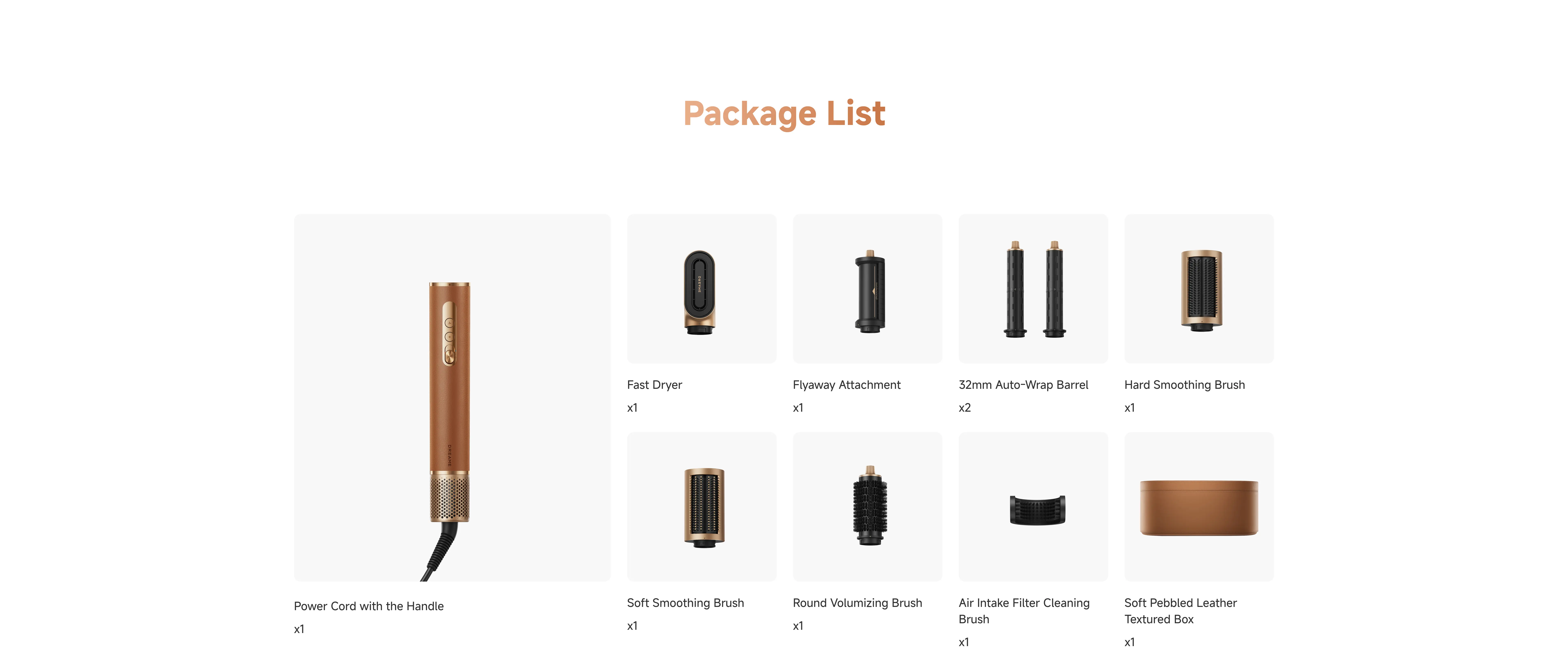 The package includes the Airstyle Pro main unit, 7 magnetic styling attachments, a storage case, a
