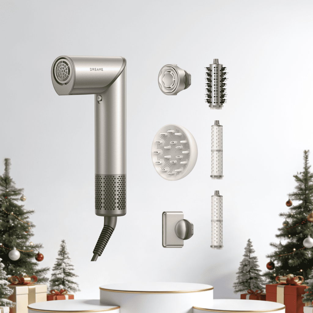 The DREAME Dazzle all-in-one hair styler & dryer has completely transformed my hair routine. I have thick, curly hair that usually takes ages to dry and style, but this device delivers fast, powerful drying without the heat damage - cutting my morning routine time in half. What really sets it apart is how smart and intuitive it is, the heat and airflow automatically adjust based on the nozzle I attach. That means I get the perfect temperature every time, whether I’m diffusing my curls or going for a sleek, straight look.The modern digital display is another standout feature - it shows the temperature, airflow speed, and styling mode clearly, making it super user-friendly. The 5 snap-on nozzles are tailored for everything I need: from a diffuser to a flat iron to a curling wand. They snap on easily and stay secure during use. Having the Dazzle be an all-in-one product means I can donate my old individual items (curling wand, straightener, blow dryer) and free up so much space in my bathroom vanity.I especially love the swivel neck design - it lets me adjust angles effortlessly and switch attachments on the fly. It gives me total freedom to style from any position without awkward wrist bending. Overall, this is a versatile, intelligent, and beautifully designed styling tool that actually makes getting ready enjoyable. I highly recommend it for anyone who wants salon-quality results at home - especially if you have textured or thick hair like mine.