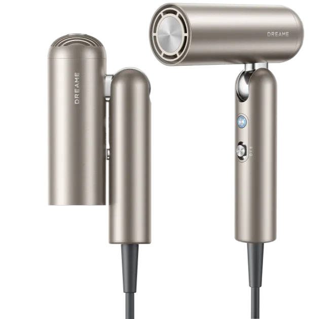 The Dreame Pocket Hair Dryer is distinguished by its ultra-lightweight construction, foldable design for portability, and a high-performance 110,000 RPM motor that ensures rapid drying. Beyond being a hair dryer, it serves as your personal styling assistant, equipped with an anti-frizz nozzle and a curling attachment, offering a range of styling options for on-the-go convenience.